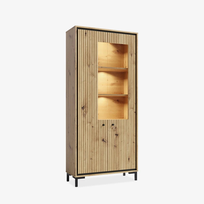 Elevated on slim black legs and finished with sleek ribbed detailing, the Artisan display cabinet blends elegance with contemporary style. Available in five different colour finishes, it’s easy to match with your interior theme, whether you prefer light, natural woods or deeper, dramatic tones.